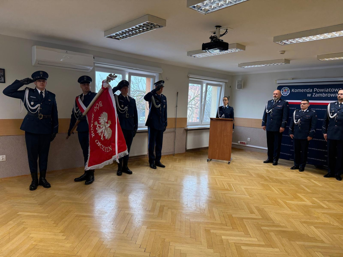 W Komendzie Powiatowej Policji w Zambrowie odbyła się uroczystość związana ze zmianą szefa zambrowskich policjantów. Ze Sztandarem Komendy Powiatowej Policji w Zambrowie przywitał się obejmujący stanowisko młodszy inspektor Daniel Szymanowicz. Uroczystego wprowadzenia dokonał I Zastępca Komendanta Wojewódzkiego Policji w Białymstoku inspektor Krzysztof Woźniewski.