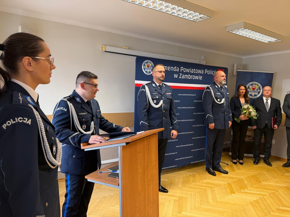 Decyzją Komendanta Wojewódzkiego Policji w Białymstoku, obowiązki Komendanta Powiatowego Policji w Zambrowie zostały powierzone mł. insp. Danielowi Szymanowiczowi. Zastąpił na tym stanowisku insp. Artura Maksymiuka, który będzie pełnił obowiązki Komendanta Powiatowego Policji w Grajewie. W uroczystości wzięli udział: I Zastępca Komendanta Wojewódzkiego Policji w Białymstoku insp. Krzysztof Woźniewski, Starosta Powiatu Zambrowskiego Edyta Marchelska-Groszfeld wraz z Zastępcą Robertem Rosiakiem, Wójt Gminy Zambrów Jarosław Kos, Wójt Gminy Szumowo Andrzej Pskiet, Wójt Gminy Rutki Kossaki Dariusz Modzelewski, Komendant Państwowej Straży Pożarnej w Zambrowie bryg. Andrzej Kalinowski, Zastępca Dyrektora Zakładu Karnego w Czerwonym Borze kpt. Jarosław Modzelewski, Szef Pionu Operacyjnego 2. Brygady Pancernej Legionów w Czerwonym Borze płk. Robert Radomski, Kapelan zambrowskich policjantów ks. Prałat dr Wojciech Nowacki, Przewodniczący Niezależnego Samorządnego Związku Zawodowego Policjantów podkom. Paweł Korytkowski oraz kadra kierownicza, policjanci i pracownicy cywilni zambrowskiej komendy.