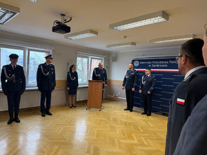 I Zastępca Komendanta Wojewódzkiego Policji w Białymstoku insp. Krzysztof Woźniewski w swoim przemówieniu podkreślił gotowość mł. insp. Daniela Szymanowicza do podejmowania wyzwań i rozwiązywania problemów. Podkreślił posiadane przygotowanie, umiejętności i wiedzę, poparte doświadczeniem zawodowym. I Zastępca Komendanta Wojewódzkiego Policji w Białymstoku życzył sukcesów w służbie na obejmowanym stanowisku Komendanta Powiatowego Policji w Zambrowie. Gratulacje z okazji objęcia stanowiska Komendanta Powiatowego Policji w Zambrowie przekazała również Pani Starosta w imieniu przedstawicieli władz samorządowych,która podkreśliła konieczność dbania o bezpieczeństwo mieszkańców powiatu zambrowskiego.