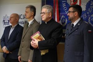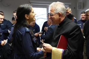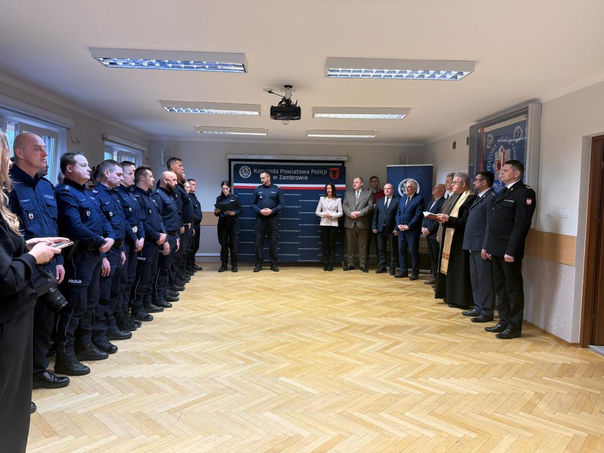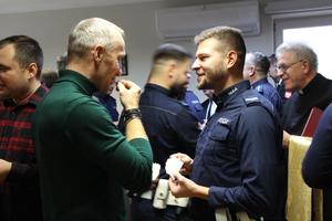 Przed nami wyjątkowy czas świąt Bożego Narodzenia. To okres spotkań z rodziną, przyjaciółmi, dzielenia się opłatkiem i życzenia sobie wszystkiego, co najlepsze. Wielu policjantów ten czas spędzi z dala od najbliższych czuwając nad naszym bezpieczeństwem. Dziś mundurowi spotkali się przy wspólnym wigilijnym stole w zambrowskiej komendzie. W spotkaniu uczestniczył Komendant Powiatowy Policji w Zambrowie młodszy inspektor Daniel Szymanowicz wraz z zastępcą oraz policjanci i pracownicy zambrowskiej jednostki. Obecni byli również przedstawiciele władz samorządowych powiatu zambrowskiego, zaprzyjaźnionych służb oraz duchowny zambrowskich policjantów. Szef zambrowskich policjantów złożył wszystkim świąteczne życzenia i podziękował za dotychczasową służbę.