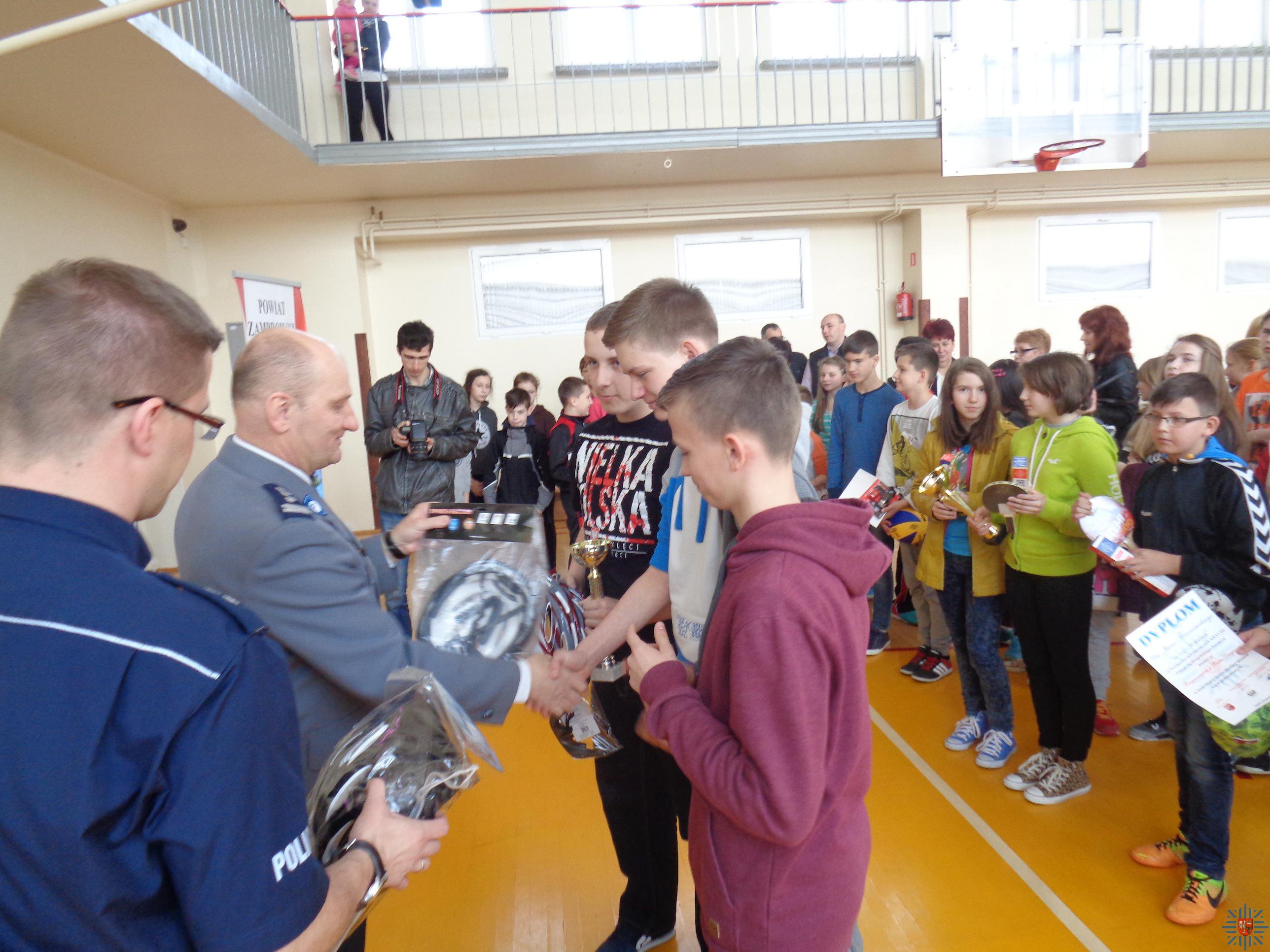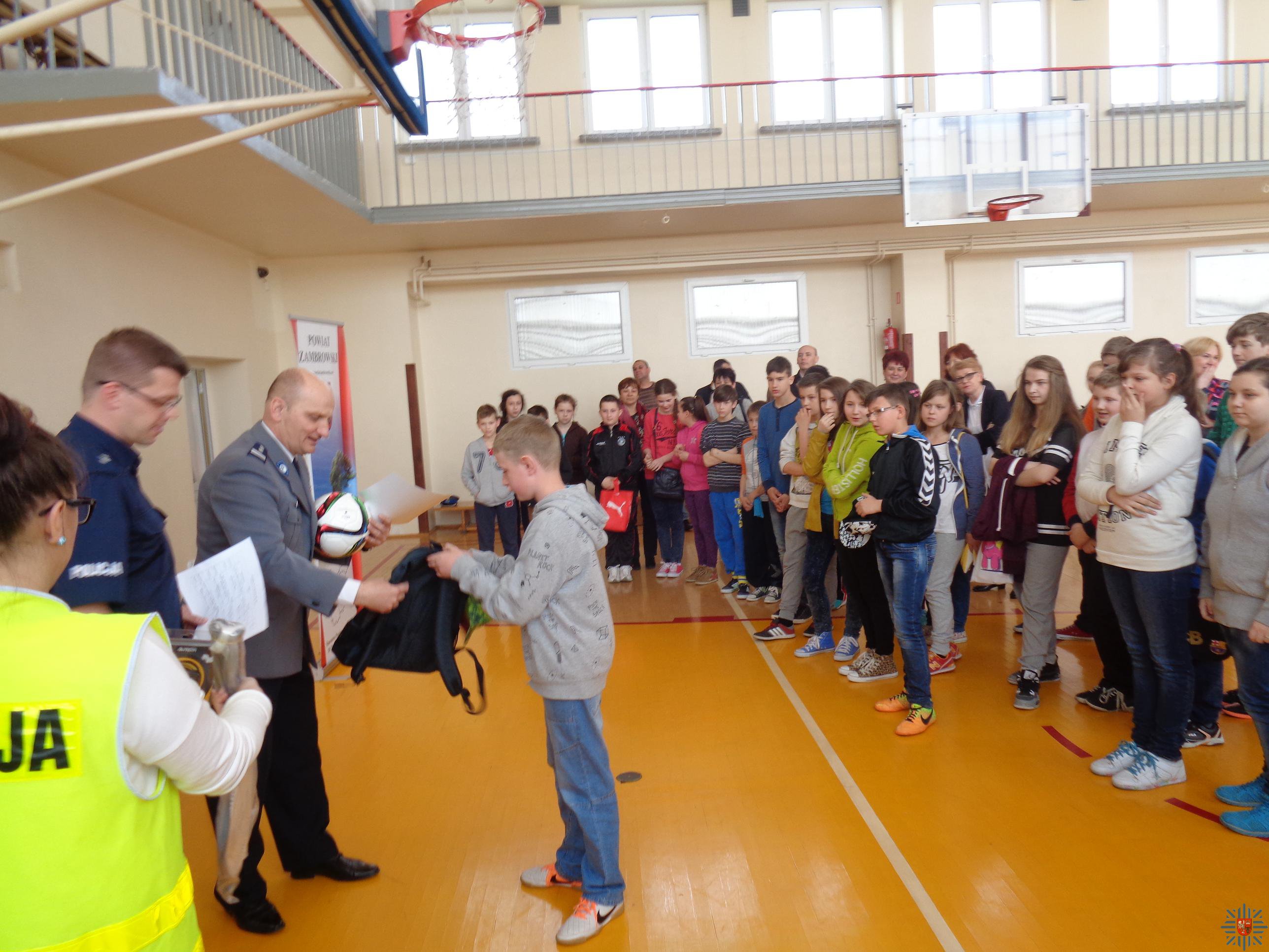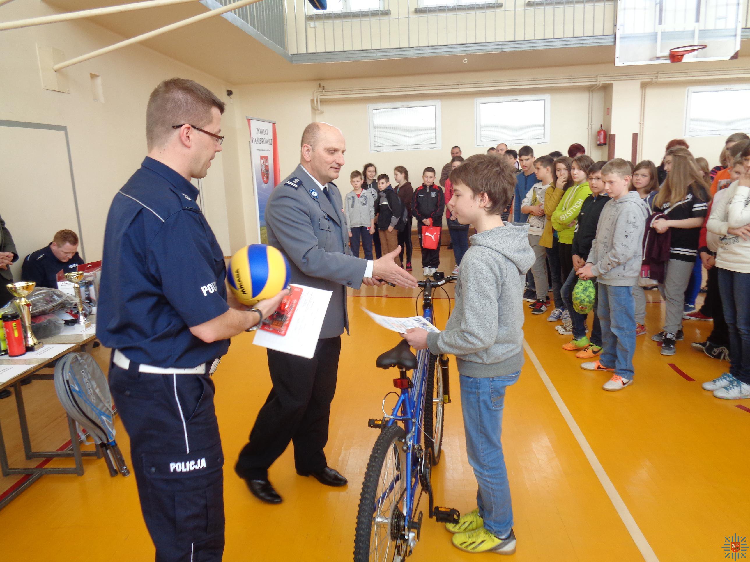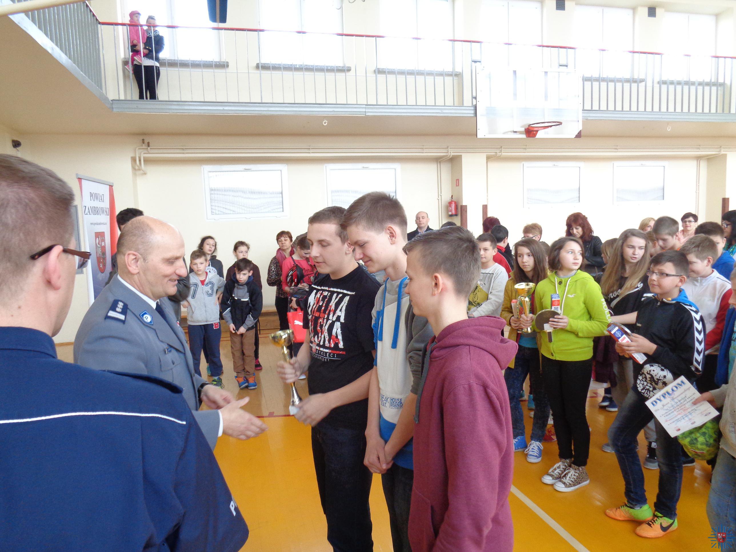 Dzisiaj na terenie Szkoły Podstawowej nr 5 w Zambrowie odbyły się eliminacje 38 edycji Ogólnopolskiego Konkursu Wiedzy o Bezpieczeństwie w Ruchu Drogowym. Został on zorganizowany przez funkcjonariuszy Wydziału Ruchu Drogowego Komendy Powiatowej Policji w Zambrowie. Do rywalizacji przystąpiło 9 szkół podstawowych i 3 szkół gimnazjalnych. Pierwszą konkurencją był test wiedzy dotyczący zasad bezpieczeństwa w ruchu drogowym. Podczas eliminacji powiatowych sprawdzana była również wiedza uczniów z zakresu ratownictwa medycznego. Następnie zawodnicy zmagali się podczas pokonywania toru przeszkód rowerem. Liderem wśród szkół podstawowych okazała się drużyna ze Szkoły Podstawowej w Srebrnej. Natomiast spośród gimnazjów najlepszą okazała się drużyna z Gimnazjum ZSO w Zambrowie. Na zakończenie turnieju zwycięzcy otrzymali nagrody, pamiątkowe dyplomy oraz puchary. Głównym celem zawodów jest zwiększenie bezpieczeństwa dzieci i młodzieży poprzez popularyzowanie znajomości przepisów i zasad bezpiecznego poruszania się po drogach. Nad prawidłowym przebiegiem turnieju czuwała komisja, w skład której weszli funkcjonariusze z Wydziału Ruchu Drogowego oraz Wydziału Prewencji Komendy Powiatowej Policji w Zambrowie.